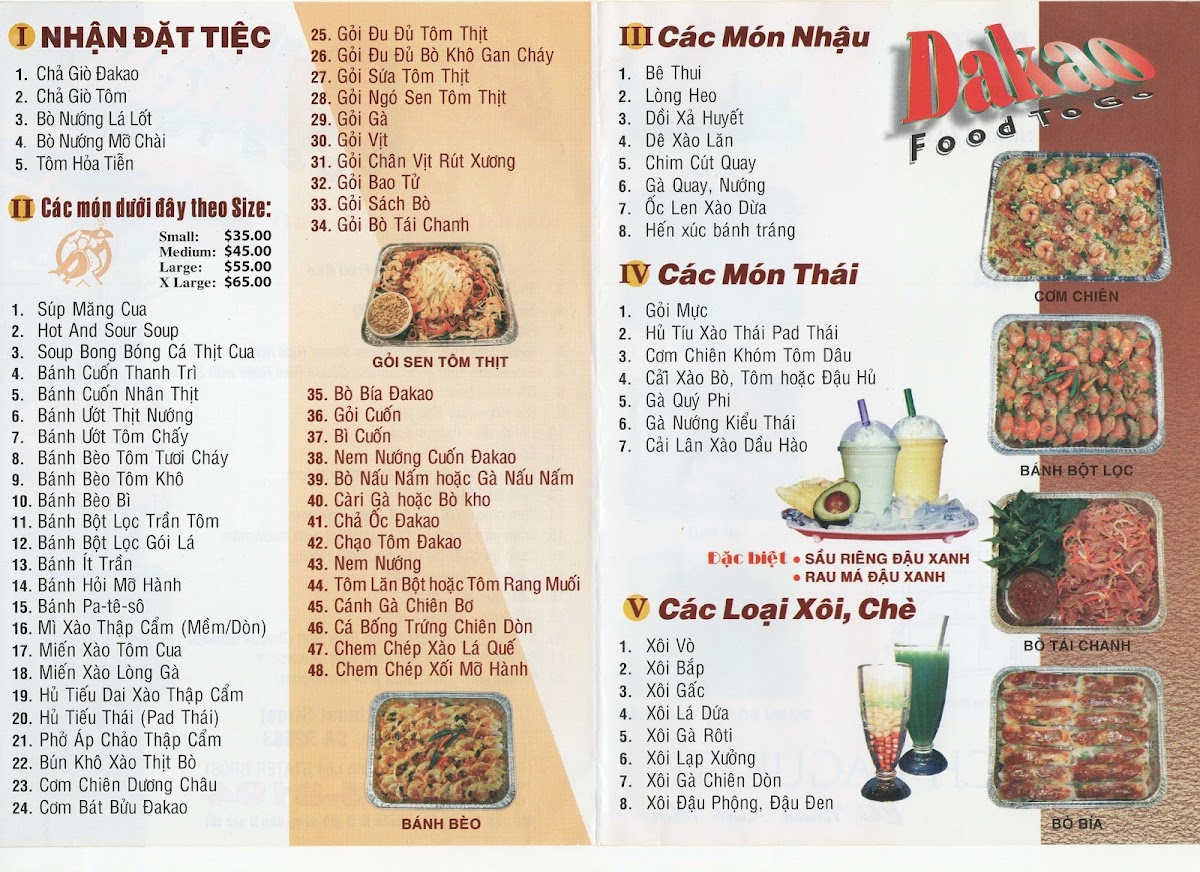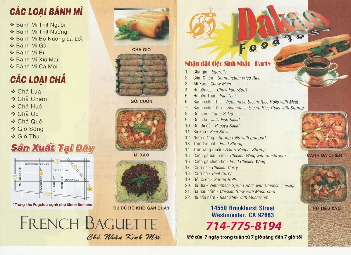Dakao Food To Go Menu